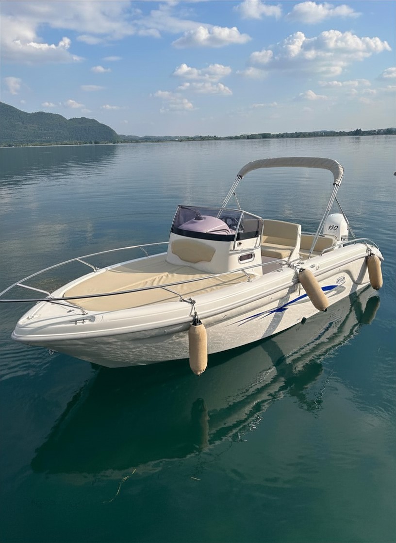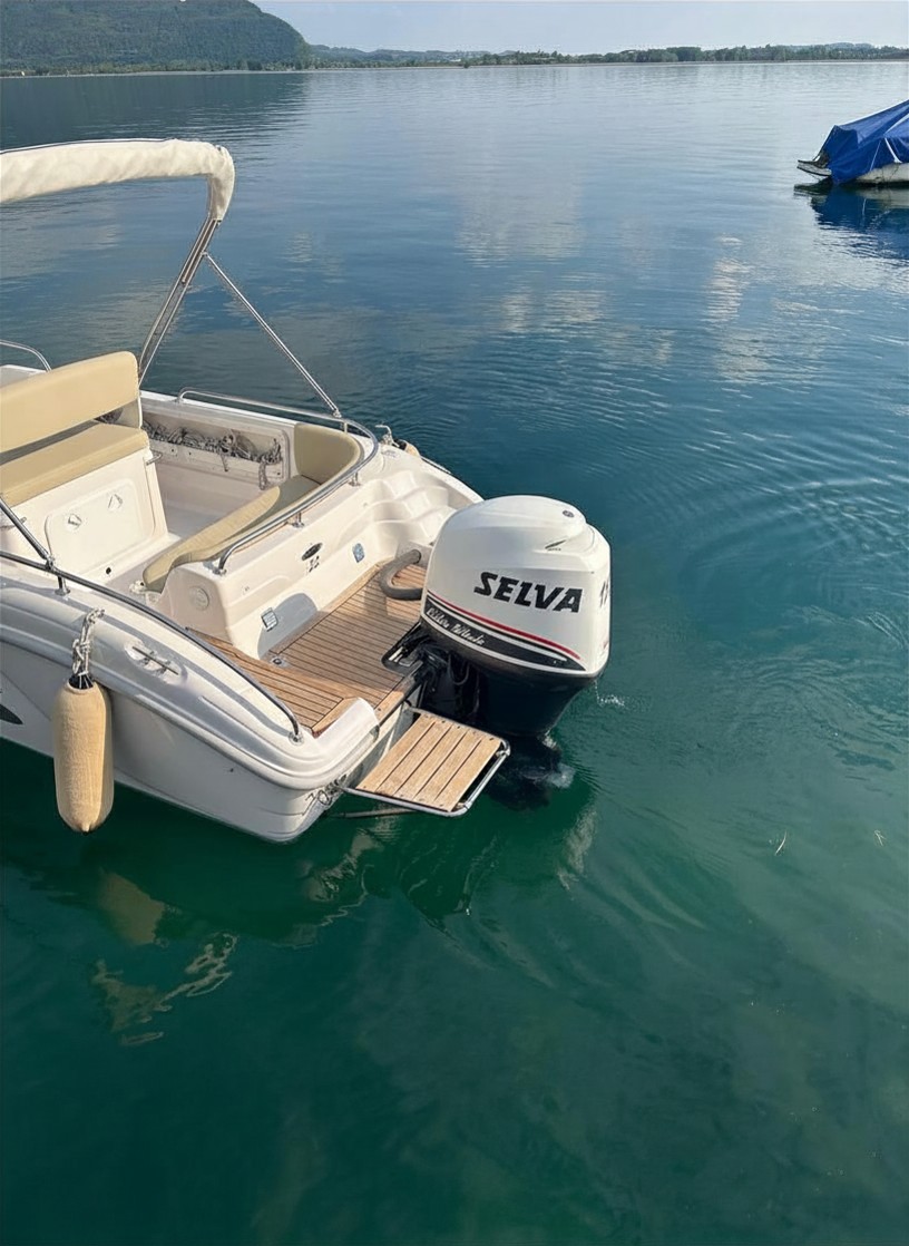 Un set-up perfetto per chi cerca una barca affidabile e facile da gestire, con un ampio prendisole e finiture di pregio.
